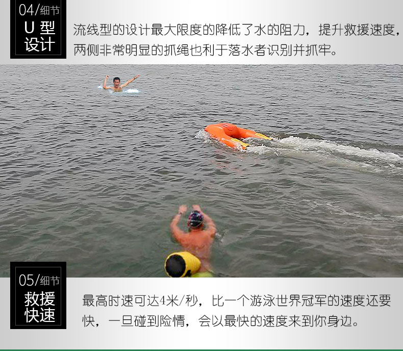 智能遙控救生器,外殼采用耐磨性、電絕緣性、韌性及耐寒性好的HDPE材料制作,適應(yīng)各種不同惡劣環(huán)境,目前搭配的動力系統(tǒng)是安全性很好的鋰電池集成系統(tǒng),使用安全,內(nèi)置9軸陀螺儀,可以識別姿態(tài)信息,自動切換左右,海浪沖翻后也能恢復(fù)姿態(tài)并保持航線運行。