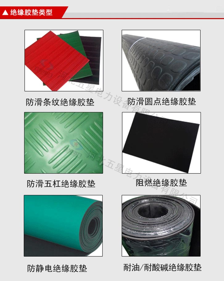 絕緣膠墊產品顏色為黑色、紅色、綠色。 不含雜質:原生橡膠材質,不含次生膠,切面不會有粉末 柔韌性好:具有優良的絕緣性能,彈性強,拉伸強度大 光澤度高:原生橡膠材質,無任何塑料成分,表面光澤度高 無氣泡:五星電力絕緣膠墊,表面無氣泡,無裂痕